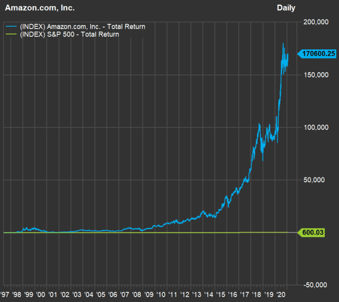 With Jeff Bezos At Helm Amazon S Stock Performance Has Made The S P 500 Look Like A Flat Line Marketwatch